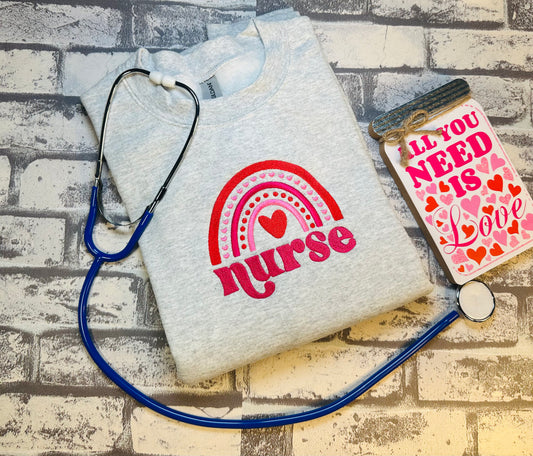 NURSE RAINBOW EMBROIDERED SWEATSHIRT