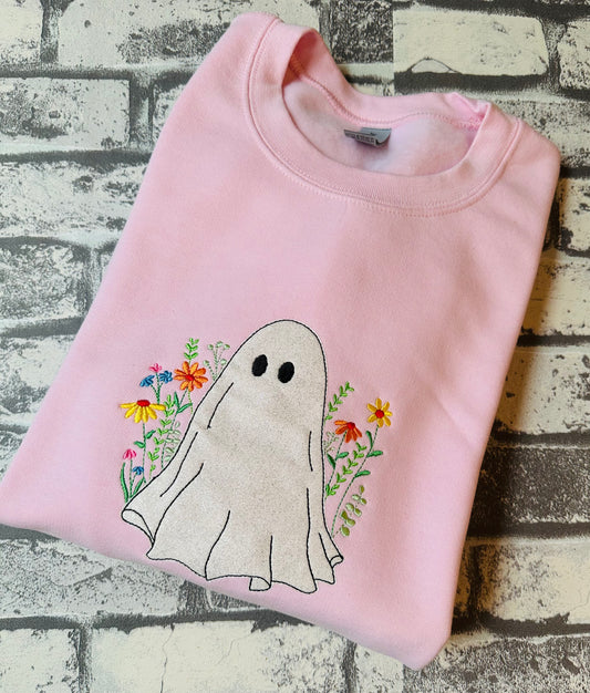 FLORAL GHOST APPLIQUÉ EMBROIDERY SWEATSHIRT