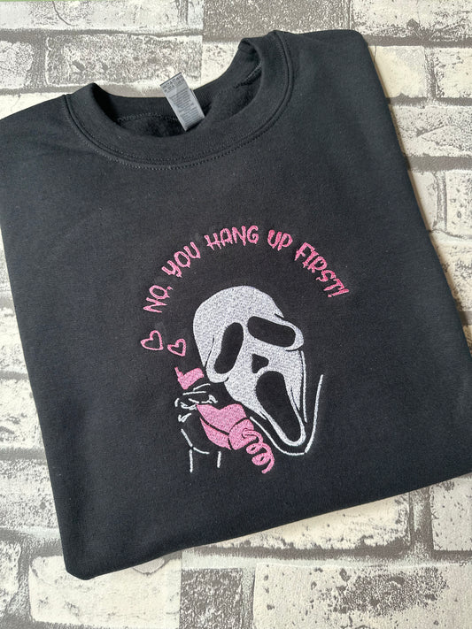 YOU HANG UP EMBROIDERED BLACK SWEATSHIRT