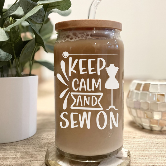 KEEP CALM AND SEW ON ICED COFFEE CUP