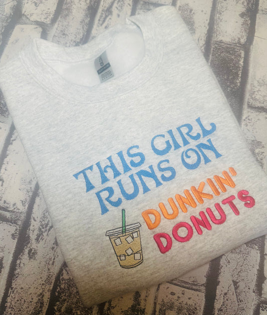 THIS GIRL RUNS ON DUNKIN EMBROIDERED SWEATSHIRT
