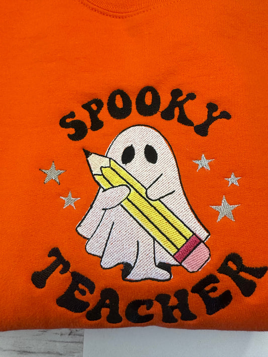 SPOOKY TEACHER EMBROIDERY ORANGE SWEATSHIRT